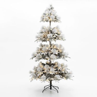 LuxenHome 7.5 ft. Pre-Lit Flocked Slender Artificial Pine Christmas Tree