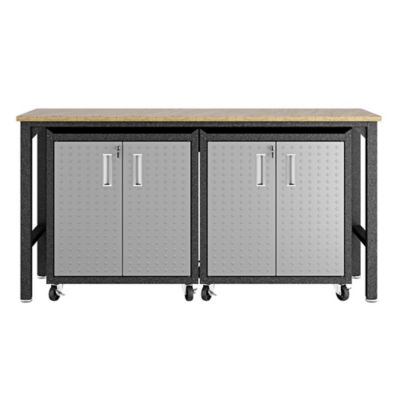 Manhattan Comfort 3 pc. Fortress Mobile Space-Saving Steel Garage Cabinet and Worktable 1.0, Gray, 14GMC