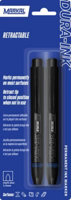 MARKAL Dura-Ink Retractable Permanent Ink Markers, Black, 2-Pack