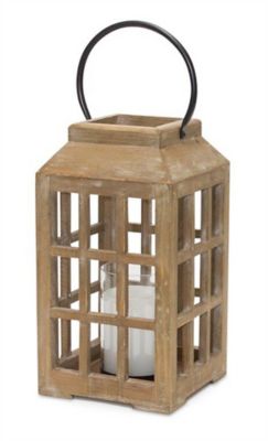 Melrose International 6 in.x 17 in. Natural Wooden Lantern with Glass Hurricane