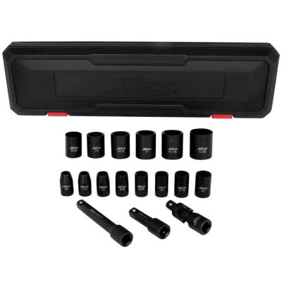Milton 1/2 in. Drive Shallow 3/8 in.-1-1/8 in. SAE Impact Socket Set with Universal Joint and Extension Bars, 17 pc.