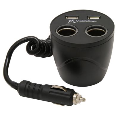 MobileSpec 12V Cup Holder 2 Socket 2 Port 4-in-1 Car Adapter
