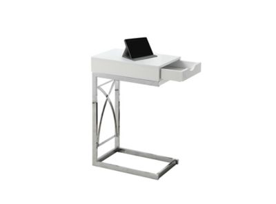 Monarch Specialties Metal C-Shaped Modern Accent Table with Storage Drawer, Glossy White/Chrome