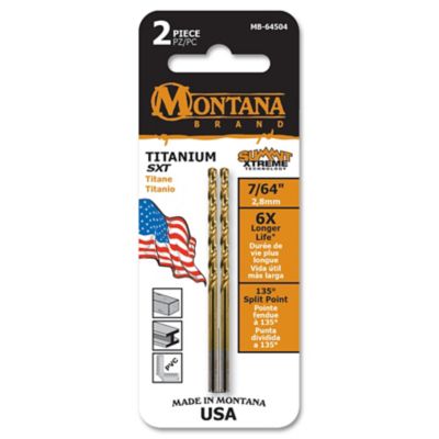 Montana Brand Tools 7/64 in. Titanium Round Shank Drill Bits, Precision CNC Machined High Speed Steel, 2 pc.