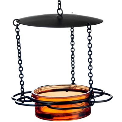 Mosaic Birds Hanging Glass Bowl Floral Bird Feeder, 3.4 oz. Capacity, Orange