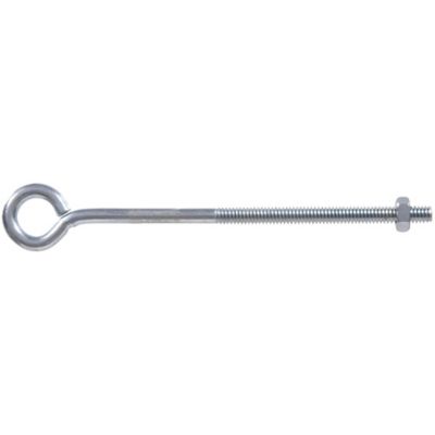 Hardware Essentials 6" Zinc Eye Bolts with Hex Nut are ideal for securing ropes and cables. They're rated for an 80 lb. working load limit. The zinc-plated steel construction helps ensure durability.