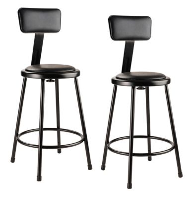National Public Seating Heavy-Duty Vinyl Padded Steel Stools, Backrest, 2-Pack, 24 in., Black