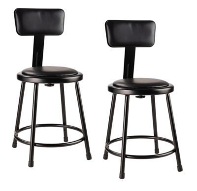 National Public Seating Heavy-Duty Vinyl Padded Steel Stools, Backrest, 2-Pack, 18 in., Black