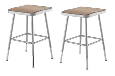 National Public Seating Height-Adjustable Heavy-Duty Square Seat Steel Stools, 2-Pack, 19-27 in.