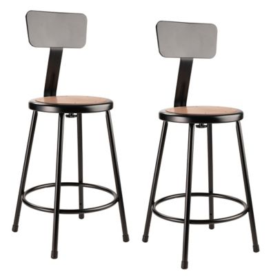 National Public Seating Steel Stools, Backrest, 2-Pack, 24 in., Black