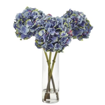 Nearly Natural 18 in. Artificial Hydrangea Arrangement in Glass Vase, Blue