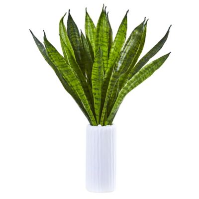 Nearly Natural Artificial 22 in. Sansevieria Plant in White Vase