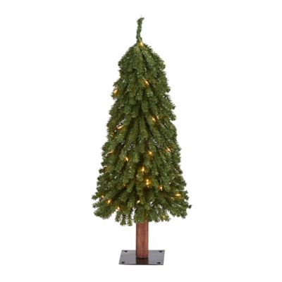 Nearly Natural 3 ft. Pre-Lit Grand Alpine Artificial Christmas Tree with Bendable Branches on Natural Trunk, Clear Lights