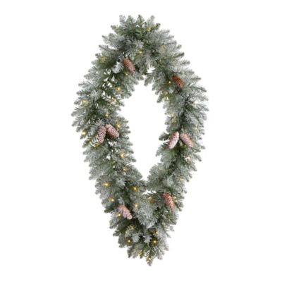 Nearly Natural 3 ft. Pre-Lit Geometric Diamond Frosted Artificial Christmas Wreath with Pine Cones, Warm White LED Lights