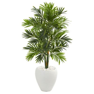 Nearly Natural 4 ft. Artificial Areca Palm Tree in White Planter