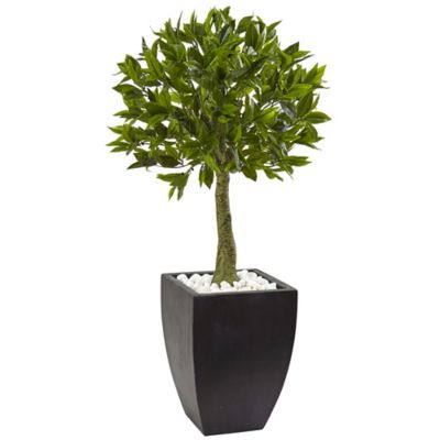 Nearly Natural 42 in. Indoor/Outdoor UV-Resistant Bay Leaf Topiary with Black Wash Planter