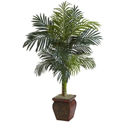 Nearly Natural 5 ft. Golden Cane Palm with Decorative Container