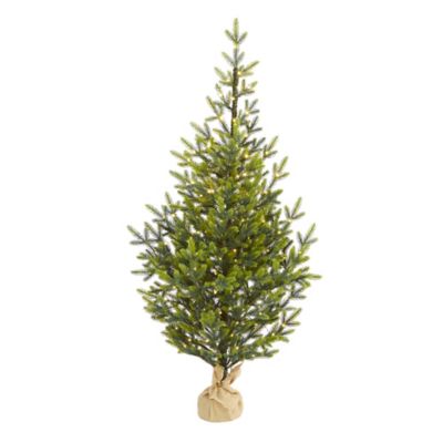 Nearly Natural 5 ft. Fraser Fir Natural Look Artificial Christmas Tree in Base with Clear LED Lights, Bendable Branches