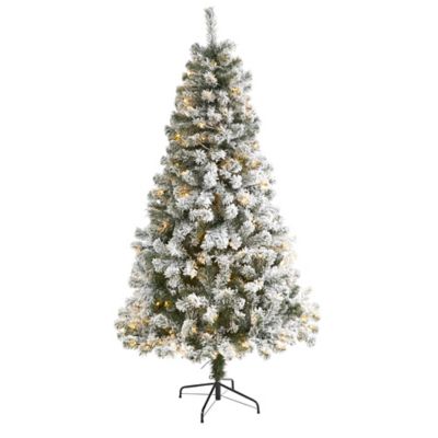 Nearly Natural 6 ft. Flocked West Virginia Fir Artificial Christmas Tree, 250 Clear LED Lights