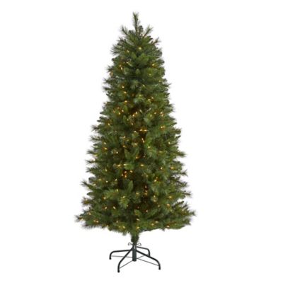 Nearly Natural 6 ft. Slim West Virginia Mountain Pine Artificial Christmas Tree, 300 Clear Lights and 629 Bendable Branches