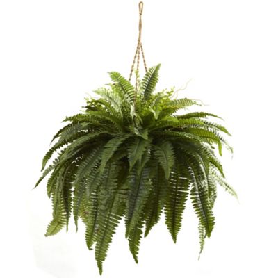 Nearly Natural 29 in. Artificial Double Giant Boston Fern Hanging Basket
