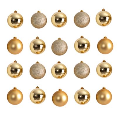 Nearly Natural Shatterproof Christmas Tree Ornament Set with Reusable Storage Container, Gold, 20 pc.