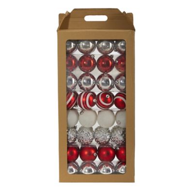 Nearly Natural Shatterproof Christmas Tree Ornament Set with Reusable Box, Red, 64 pc.