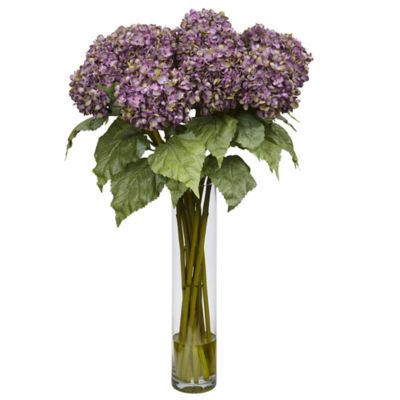 Nearly Natural 18 in. Artificial Hydrangea Silk Flower Arrangement, Purple