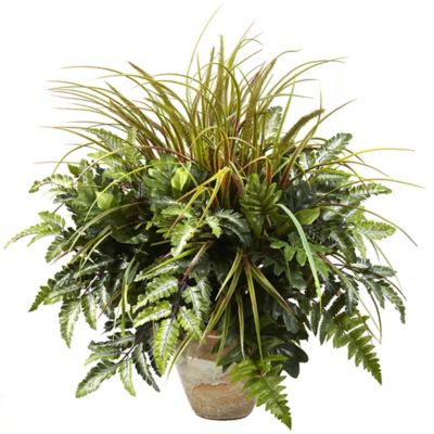 Nearly Natural 28 in. Artificial Mixed Greens & Grass with Ceramic Planter