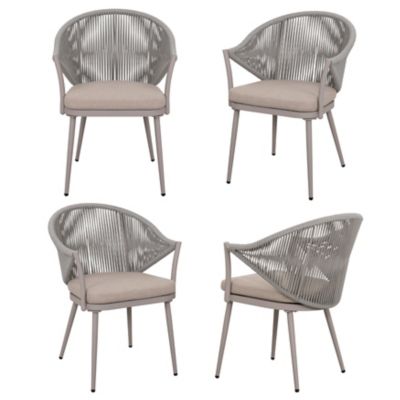 Nuu Garden Aluminum Chair Set of 4 Woven Rope Conversation Chairs with Seat Cushions
