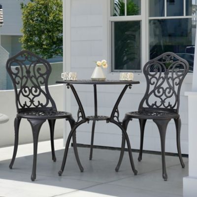 Nuu Garden Outdoor Cast Aluminum Table Set with 2 Chairs, Umbrella Hole