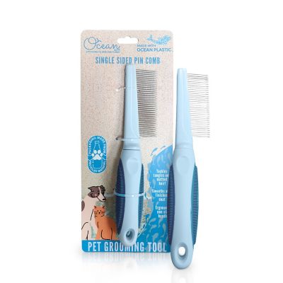 Ocean Plastic by PT Single-Sided Pin Comb Brush for Pets, Eco-Friendly Grooming Tool for Dogs and Cats, OPSSPCM08-BLU