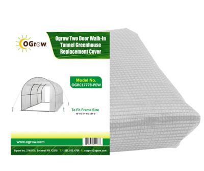 Ogrow Machrus Replacement Cover for Outdoor Walk-In Tunnel Greenhouse, White, Fits 180 in. x 72 in. x 72 in. Frames