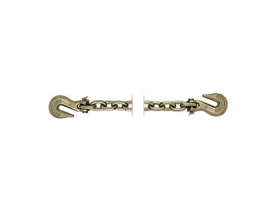 The high quality, standard link 5/16 in size chain by 20 feet long is heat-treated, and strength tested for superior quality. Transport chain with clevis grab hooks fitted on each end to create a secure connection. Grade 70 rating, providing exceptional tensile strength. Yellow Zinc finish for corrosion protection and easily seen by DOT officials.