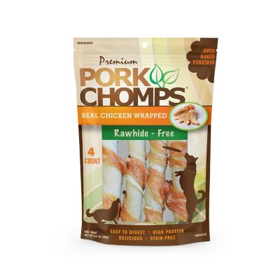 Pork Chomps 6 in. Baked Pork Skin Twists with Real Chicken Wrap, 4 ct. Dog Chews