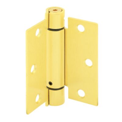 Prime-Line Door Hinge, Commercial, UL Adj. Self-Closing Spring, 3.6 in., Satin Brass Finish, .106 in. ga., 3 pk., , U 1158263