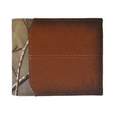 Realtree AP Camouflage Embossed Antler Logo Burnished Passcase Wallet, Tan