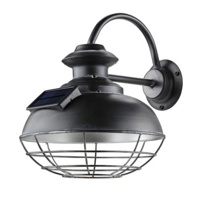 Red Shed 12 in. Solar-Powered Premium Metal Lamp with Cage, Black