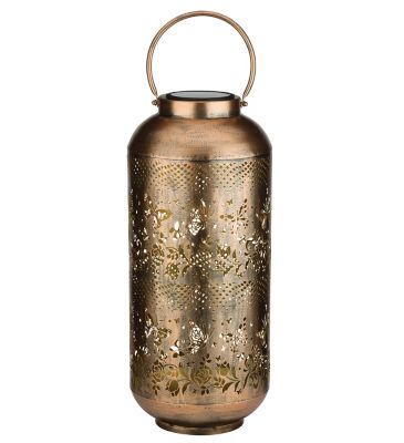 Regal Art & Gift Solar Outdoor LED Cylinder Shadow Lantern, Gold