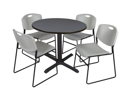 Regency Cain Round X-Base Breakroom Table with 4 Zeng Stack Chairs, 36 in., Gray