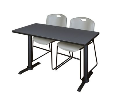 Regency Cain T-Base Training Seminar Table with 2 Zeng Chairs, 48 in. x 24 in., Gray