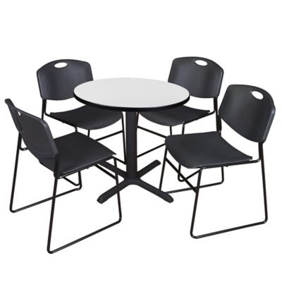 Regency Cain Small Round X-Base Breakroom Table with 4 Zeng Chairs, 30 in., Black