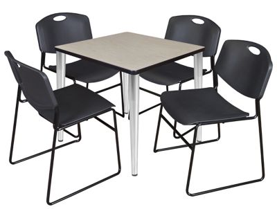 Regency Kahlo Square Breakroom Table with 4 Zeng Stack Chairs, 30 in., Chrome/Black