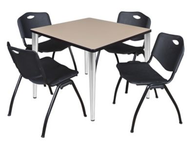 Regency Kahlo Square Breakroom Table with 4 M Stack Chairs, 36 in., Chrome/Black