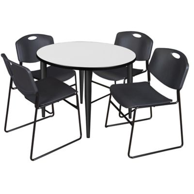 Regency Kahlo Round Breakroom Table with 4 Zeng Stack Chairs, 42 in., Black/Black