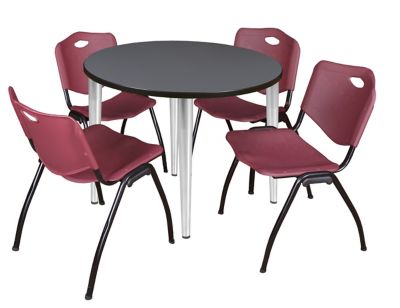 Regency Kahlo Round Breakroom Table with 4 M Stack Chairs, 42 in., Chrome/Burgundy