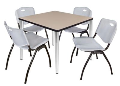 Regency Kahlo Square Breakroom Table with 4 M Stack Chairs, 42 in., Chrome/Gray