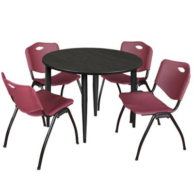 Regency Kahlo Round Breakroom Table with 4 M Stack Chairs, 48 in., Black/Burgundy