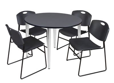 Regency Kahlo Round Breakroom Table with 4 Zeng Stack Chairs, 48 in., Chrome/Black