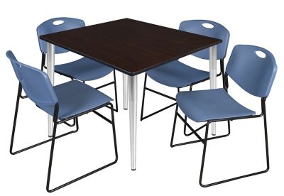 Regency Kahlo Square Breakroom Table with 4 Zeng Stack Chairs, 48 in., Chrome/Blue